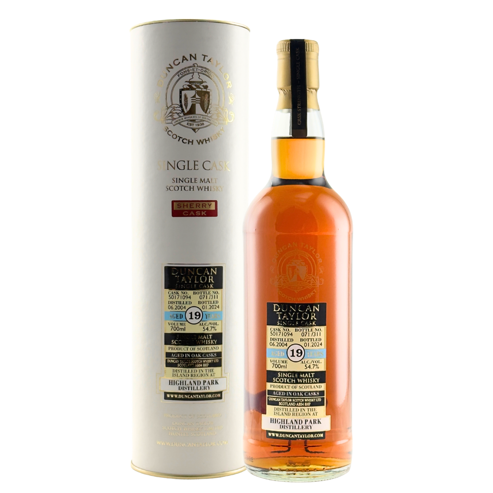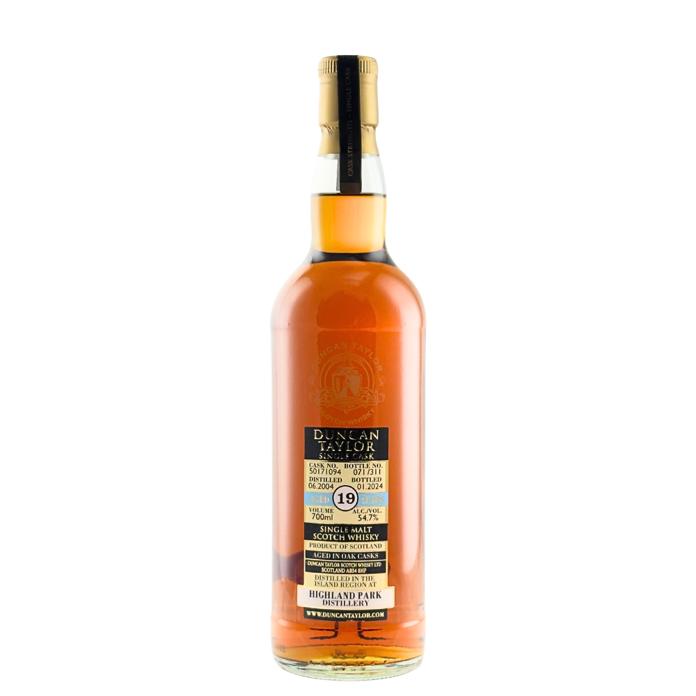 This 19-year-old Highland Park single malt was matured in a single cask by Duncan Taylor in 2004, reaching a strength of 54.7% ABV before being bottled in 2024. It was awarded a Gold Medal at the 2025 World Whiskies Awards for its exceptional taste.